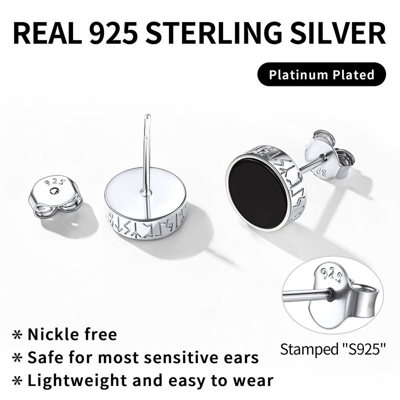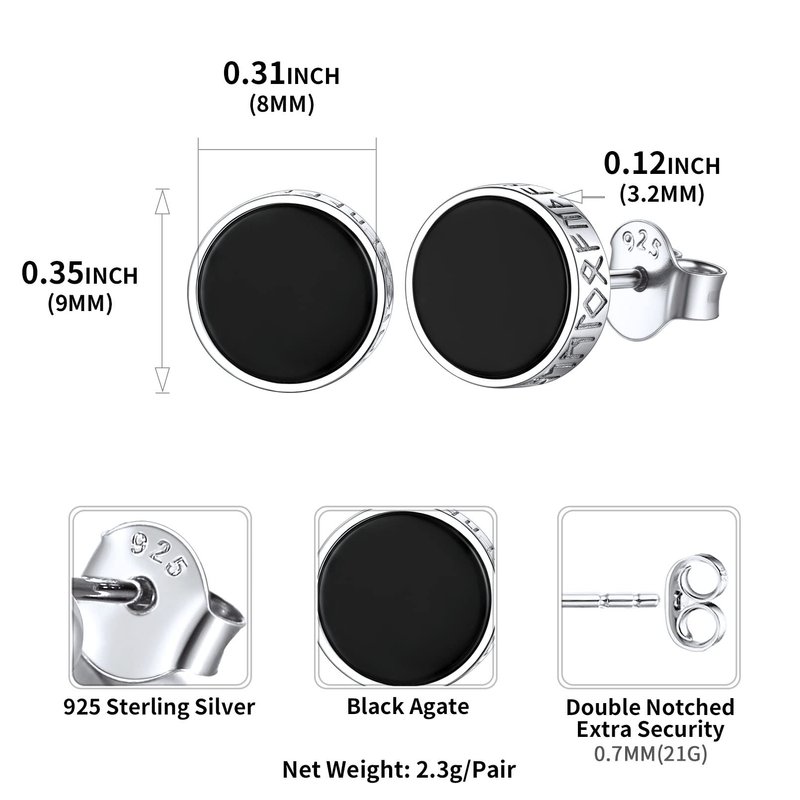 - ❤UNIQUE DESIGN - Viking runes and black onyx design of men earrings, mysterious and cool, never go out of style. The black men stud earrings is perfect for any occasion,like daily wear, party, anniversary, formal events and so on.