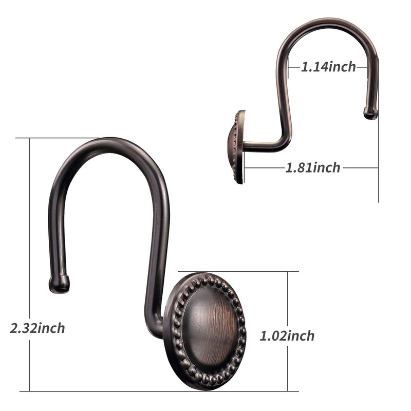 - Oil Rubbed Decorative Shower Curtain Hooks Rings-Anti-rust metal shower hooks,Very sturdy metal welded structure,they won’t crack or easily detach when hanging even heavy shower curtain, can hang both shower curtain & shower liner at once