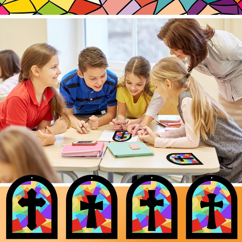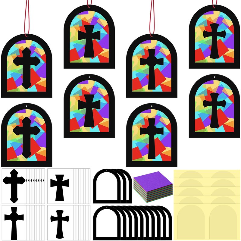- Extensive Package Contents: the kit includes 24 sets of religious cross crafts in 4 styles; Including 24 hollowed out cardboard sheets, 24 cross stickers, 1000 thin sheets of colorful tissue, and a long rope; Whether you're creating alone or hosting a crafting party, this kit provides an abundant supply of material to cater to your needs; Stick colored tissue one by one on the back of the hollow cardboard for use, excluding clear pieces