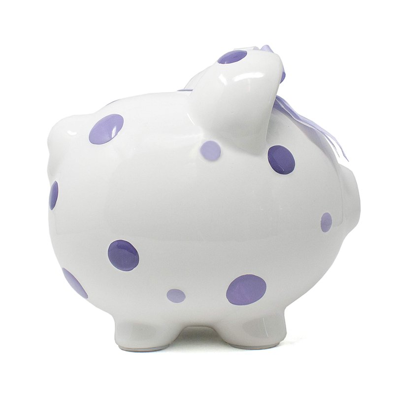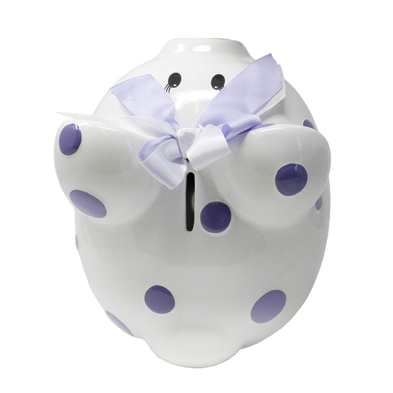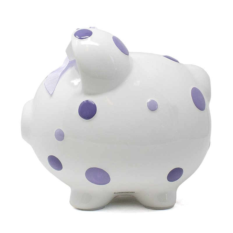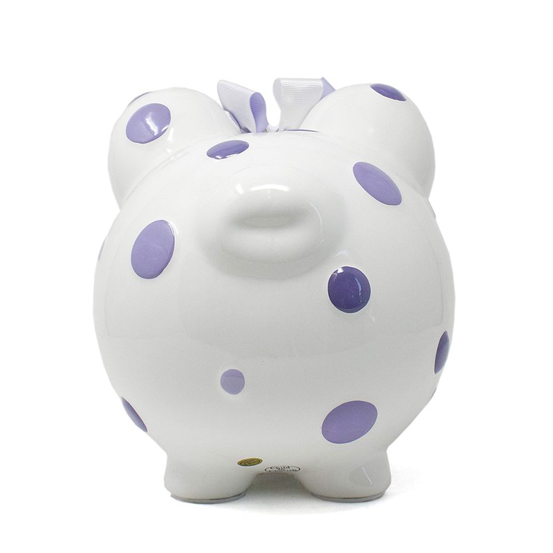 Child to Cherish Ceramic Polka Dot Piggy Bank for Girls, Purple