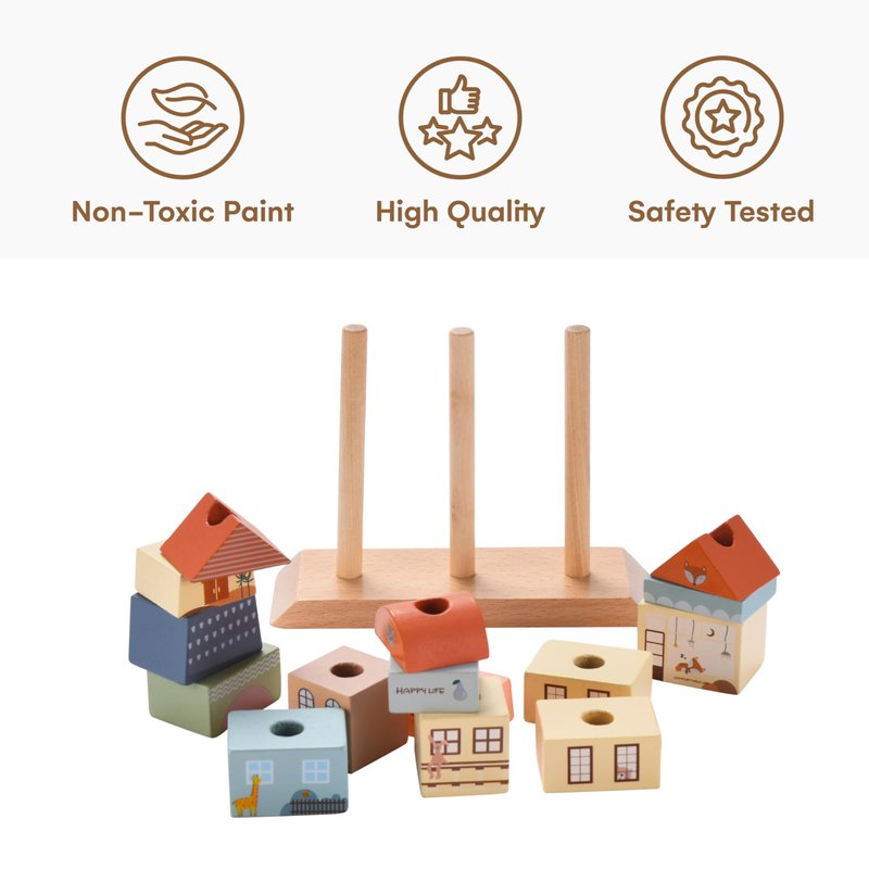 - HIGH-QUALITY MATERIALS: Our wooden blocks for toddlers are made of high-quality beech wood and non-toxic paint. The safety-tested wood blocks for toddlers 1-3 and wooden building blocks for toddlers 3-5 are perfect for ages 12 months and up. This makes them ideal 2 year old development toys and mingkids montessori toys for 1 year old
