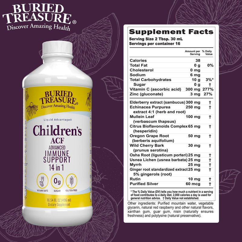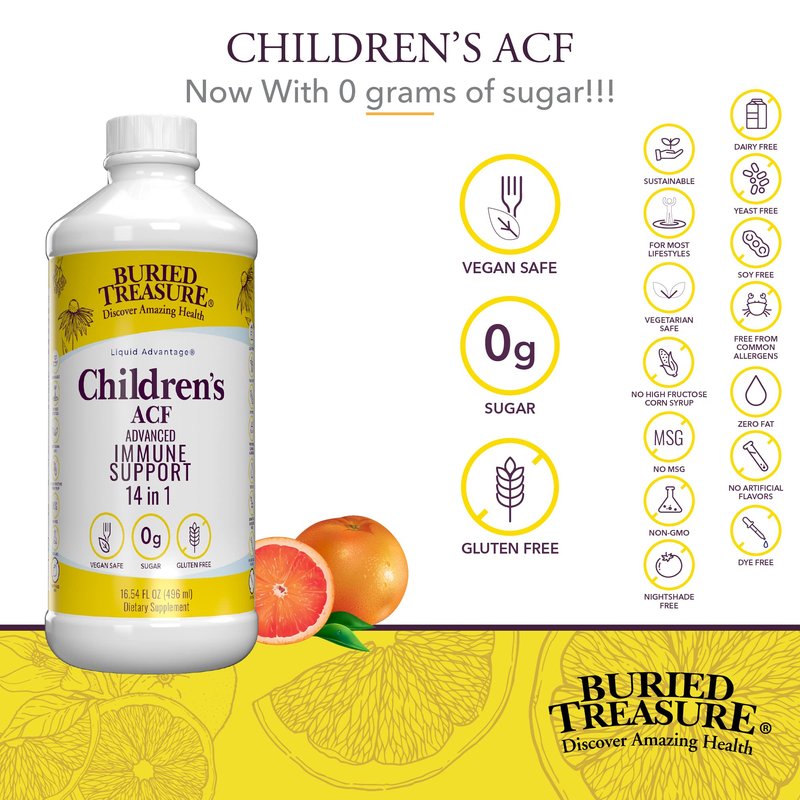 - RAPID IMMUNE SUPPORT Buried Treasure Children’s ACF is a fast-acting liquid immune support supplement created from nutrient dense vitamins and bioactive herbs to naturally boost your child’s immune system.