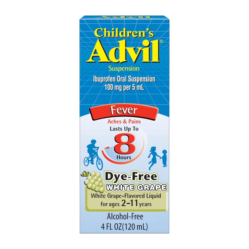 - One 4 fluid ounce bottle of white grape flavored Children's Advil Pain Reliever and Fever Reducer, Dye Free Children's Ibuprofen for Pain Relief, Liquid Ibuprofen for Children