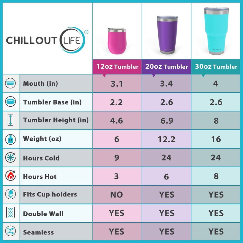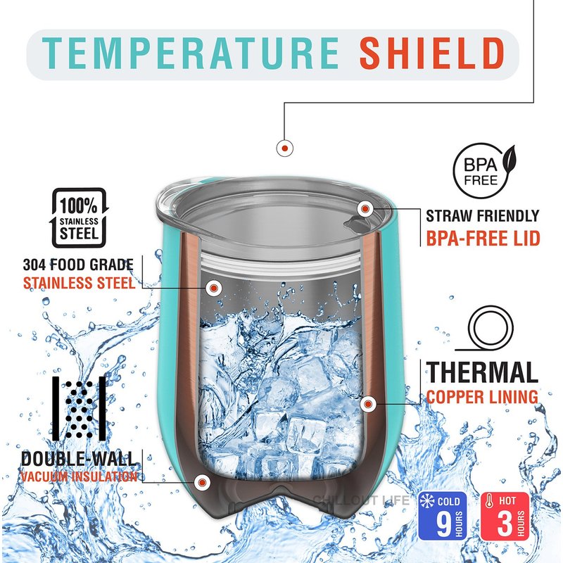 CHILLOUT LIFE colorful 12 oz stainless steel insulated wine tumblers are the answer to durable, sturdy, unbreakable drinkware solution for your home, office, picnic and nature adventures.