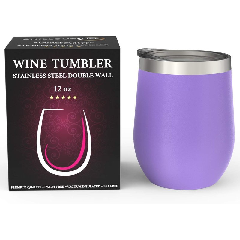 CHILLOUT LIFE 12 oz Stainless Steel Tumbler with Lid & Gift Box - Wine Tumbler Double Wall Vacuum Insulated Travel Tumbler Cup for Coffee, Wine, Cocktails, Ice Cream, Sweat Free, Powder Coated