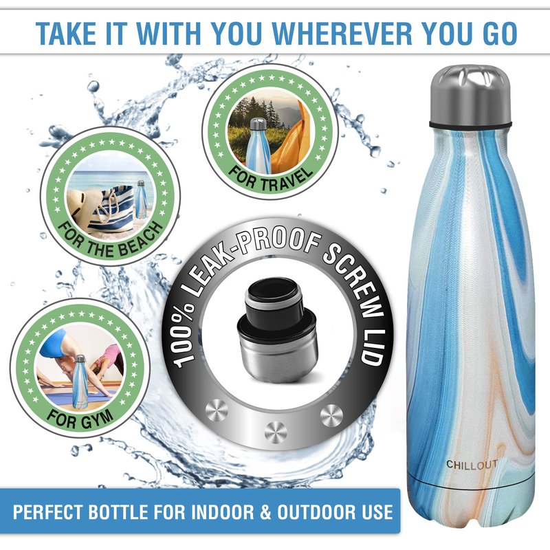 - 5-year Warranty & 100% Satisfaction: CHILLOUT LIFE has been giving you the very best drinkware and thermal products for years and we offer a 5-year warranty so that you can continue to enjoy this amazing product. If you are not positively thrilled with our premium stainless steel bottle, just let us know and we will make things right for you - hassle free!