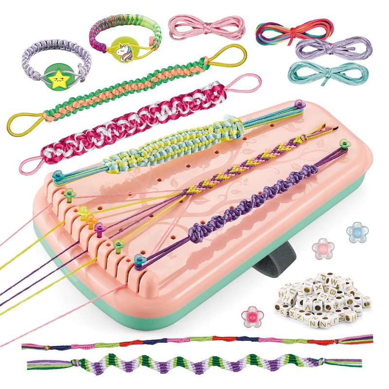 Chilpals Friendship Bracelet Making Kit for Girls,Arts and Crafts for Kids Ages 8-12,Birthday Gifts Ideas for Girl 7 8 9 10 11 Year Old - 2 in 1 Bracelets String Maker Toys Set (Pink)