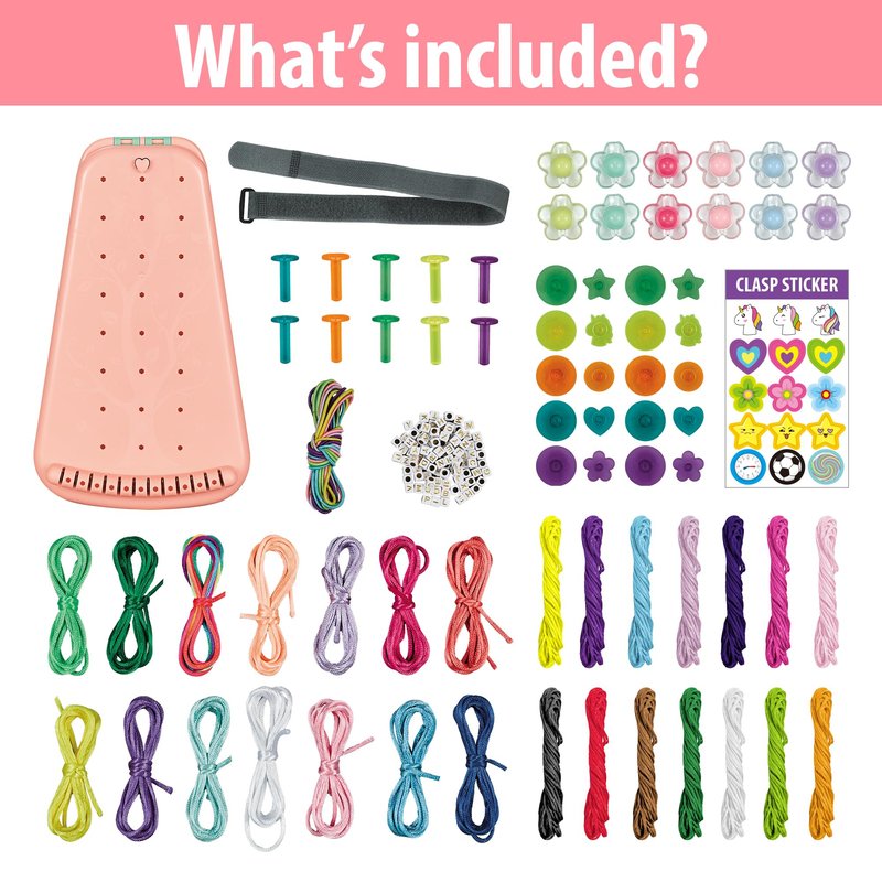 - Innovative Design, Easy to Make:It is designed with a unique feature that is easy to tie around the thigh and equipped with Velcro straps, so you are not limited to the desktop when making. It is more convenient to tie it around the thigh and ensure that it will not fall off. 12 built-in spring slots can separate and organize the wires for easy making. Step-by-step instructions for different bracelet styles help children easily master them.