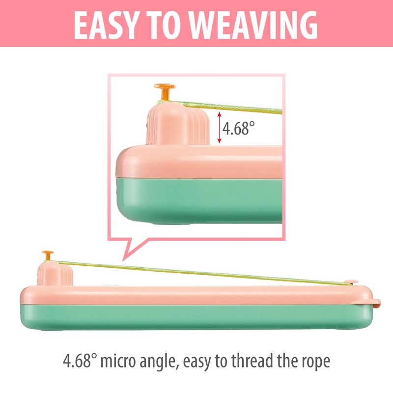 This is a newly upgraded 2-in-1 friendship bracelet making kit. With it, you can easily weave bracelets of two different materials. It comes with 28 pre-cut thin wires and 14 pre-cut thick wires, which can be used to weave 14 different styles of bracelets. Not only that, it also comes with crystal flowers, letter beads, exquisite stickers, etc. for decoration. It has been innovatively designed to add the practical function of being tied to the thigh. It brings children a better making experience and fun.