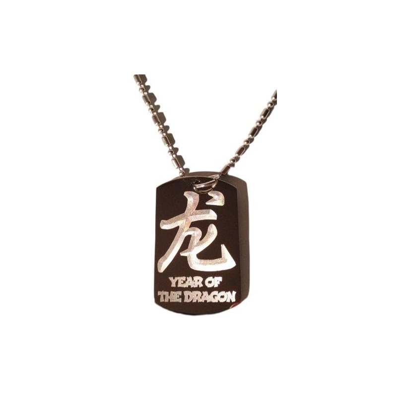 Chinese Calligraphy Year of the Dragon Zodiac Logo Symbols - Military Dog Tag Luggage Tag Key Chain Metal Chain Necklace
