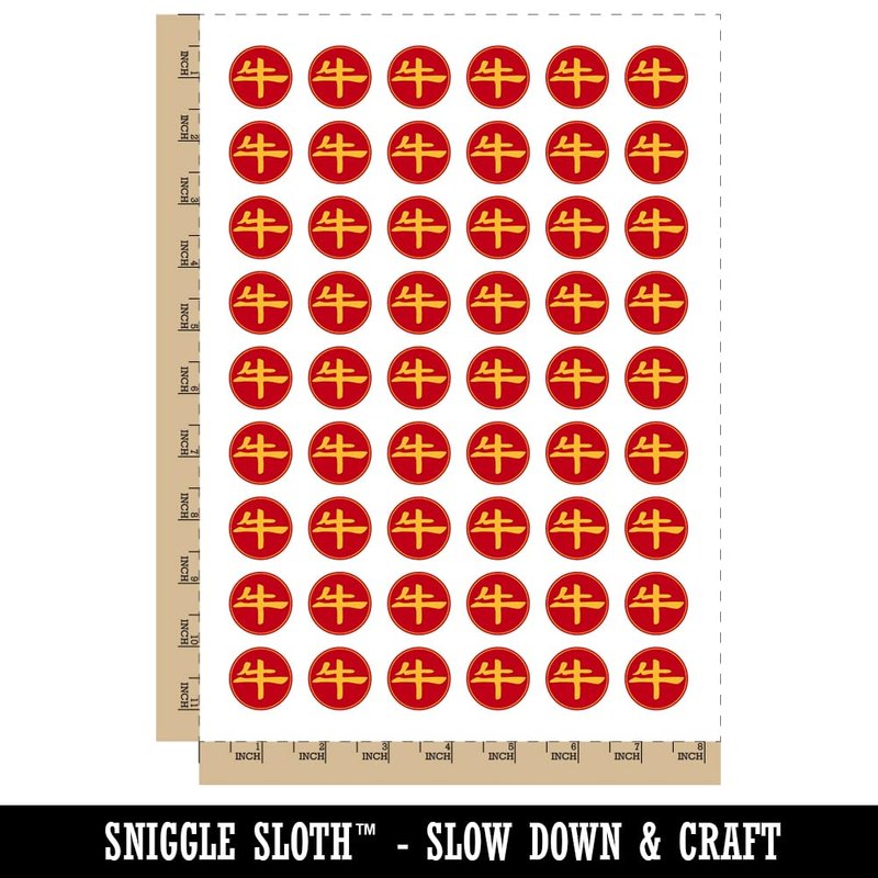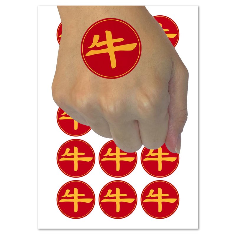 Chinese Character Symbol Ox Temporary Tattoo Water Resistant Fake Body Art Set Collection - 54 1" Tattoos (1 Sheet)