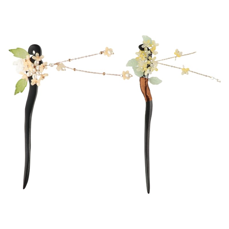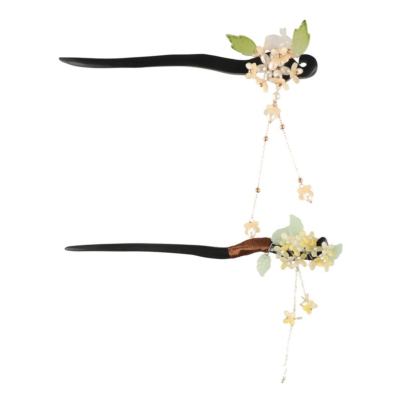 Chinese Traditional Flower Hair Sticks,Wooden Hairpin Hairstyle Design Tool Hairpin Tassel Pearl Osmanthus Cheongsam Flower Headwear