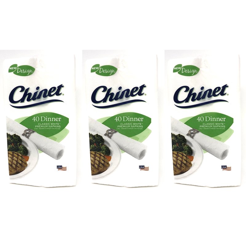 Chinet Classic White Premium Dinner Napkins, 2 Ply, 40 Count (Pack of 3)