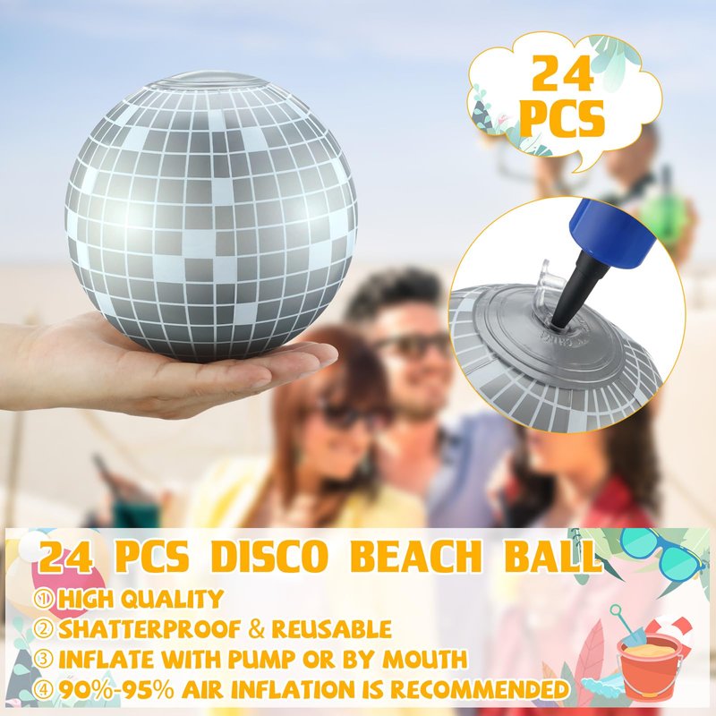 Chitidr 24 Pcs Inflatable Beach Ball Inflatable Disco Ball Disco Theme Party Decoration Summer Pool Toys Indoor Outdoor Beach Sports Theme Gift Decor