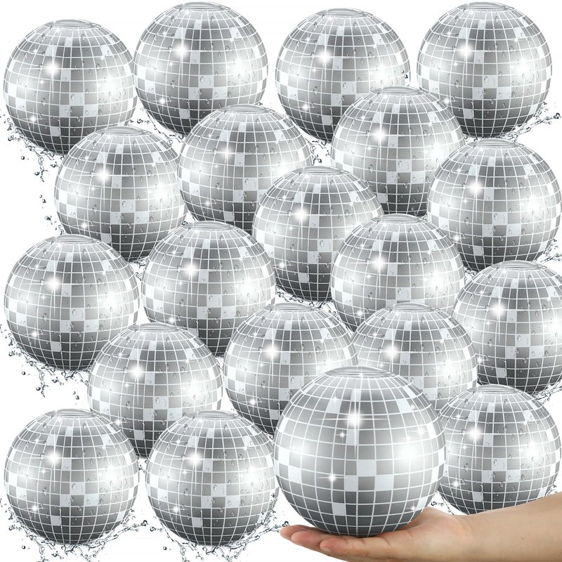 Features: These disco beach balls are ideal for pool parties, summer parties, and beach parties. Play with your friends and family to have a good time together. Playing these inflatable pool toys on the beach with your friends will improve your relationship with them, leaving you with a loved and wonderful memory. Specifications: Material: PVC plastic Main color: silver, white Size: approx. 4.72 inches/ 12 cm after inflation Package includes: 24 x Inflatable beach disco balls Notes: Manual measurement, please allow slight errors on size. The color may exist a slight difference due to different screen displays. Suitable for people over 12 years old, and it's recommended to use under the supervision of adults in case of choking risk. Do not overinflate the balloons to avoid bursting.
