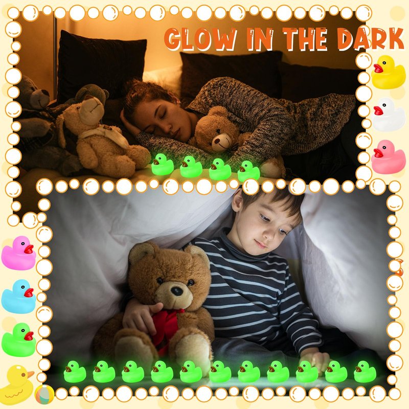 - Glow in the Dark: this package includes 24 pcs glow in the dark rubber ducks, which can absorb light under the sun or lamp for a period of time and then glow in the dark, making bath time or nighttime extra fun for the little ones and adults alike