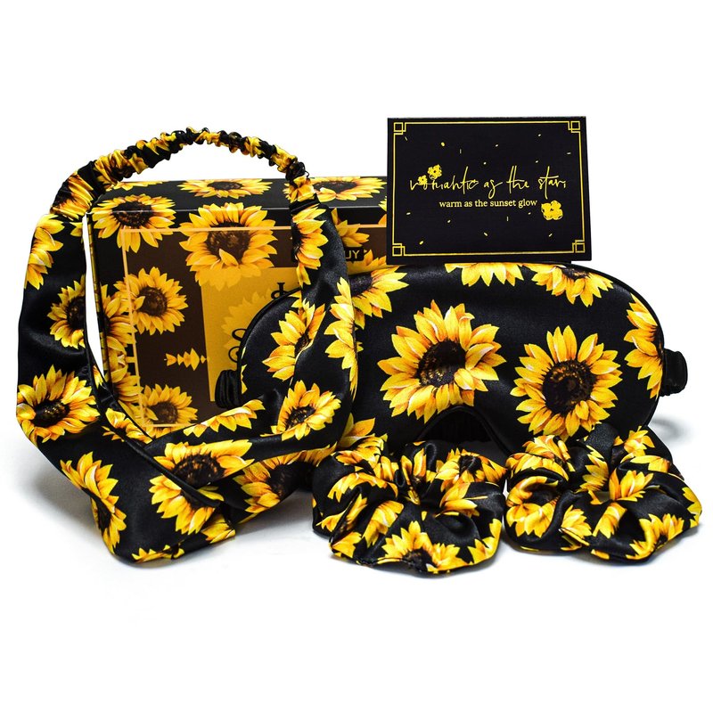 CHIUTUUY Sunflowers Print Gifts for Women, Sending Sunshine Gifts Box with Silk Headband, Hair Scrunchies and Sleep Eye Mask for Birthday, Christmas, Valentine's Day, Mother's Day Gifts Ideas