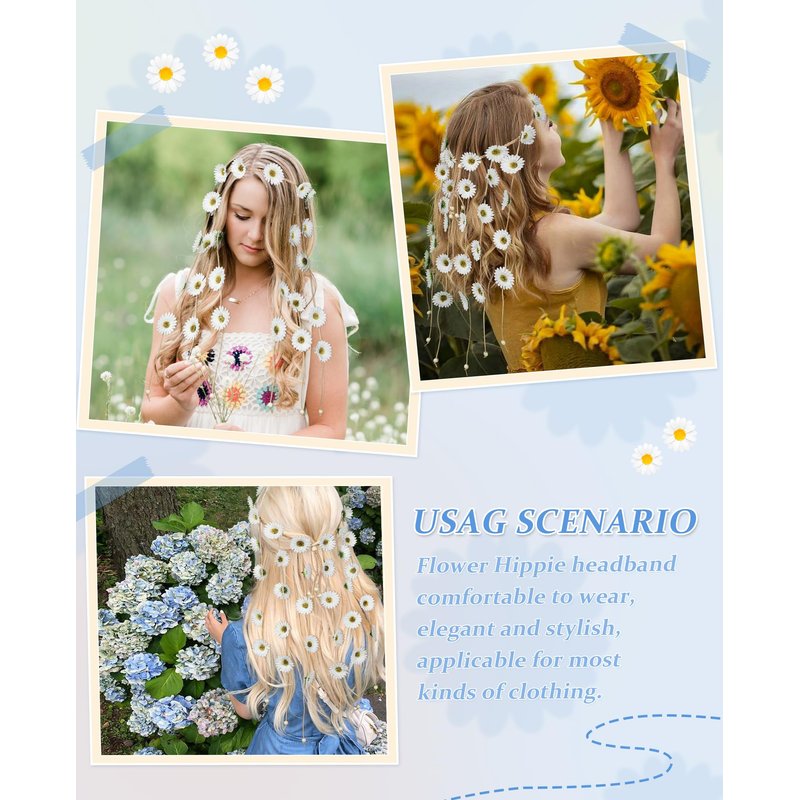 - Multiple Ways to Wear it:The bohemian sunflower hairband can be matched with all the clothes in your closet. Whether it's an office dress or an evening gown, a jeans t-shirt or a delicate skirt, it's a good match