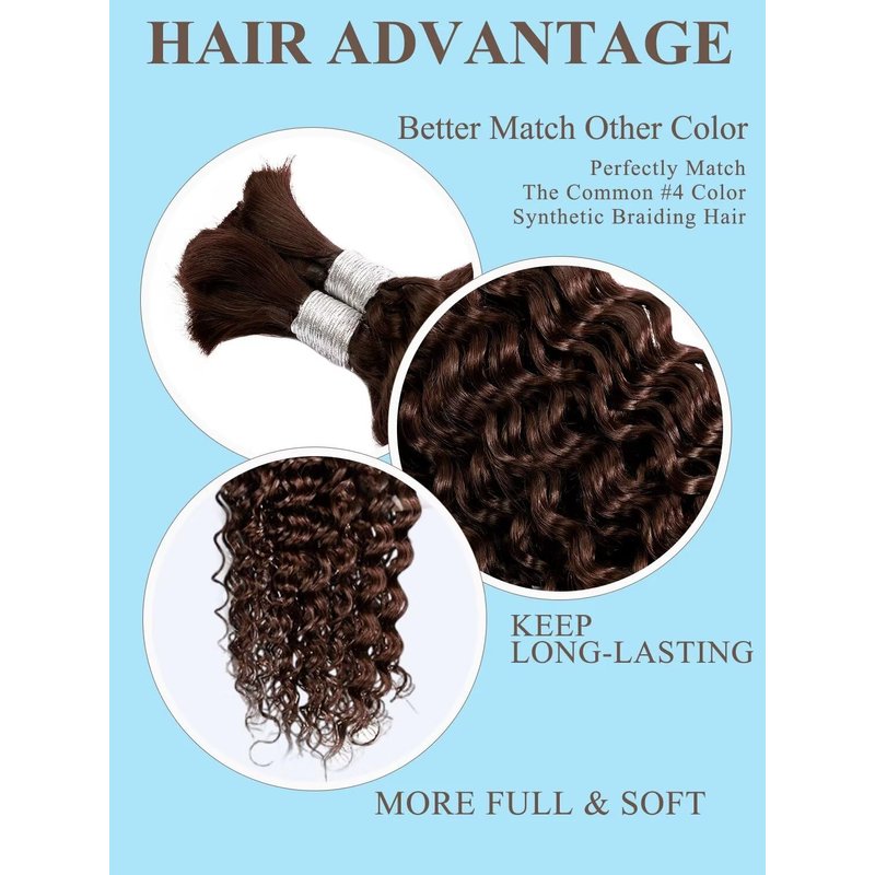 Chocolate Brown Braiding Hair 1 Bundle 50g 18 Inch Deep Water Wave Bulk Hair for Braiding 10A Brazilian Virgin Curly Human Hair Extensions for Boho Braids Wet and Wavy Color 4 Human Braiding Hair