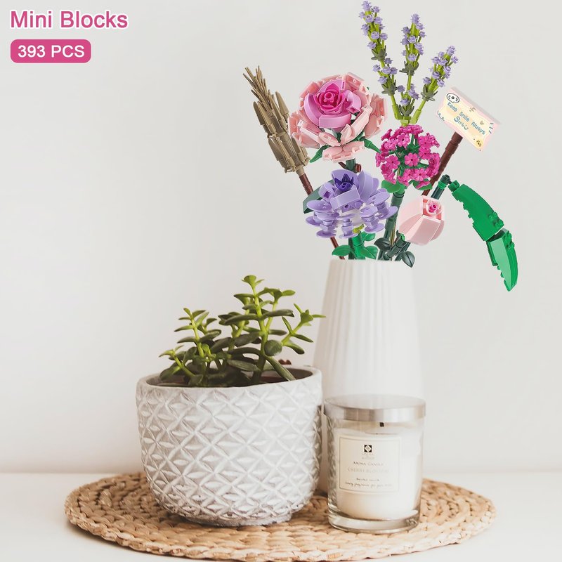 Chodia Flower Bouquet Building Blocks Sets for Adults Mini Pink Rose Lavender Botanical Collection Toys Kits Creative Birthday Anniversary for Women Girlfriends Kids 8 8+ 8-12 (393PCS)