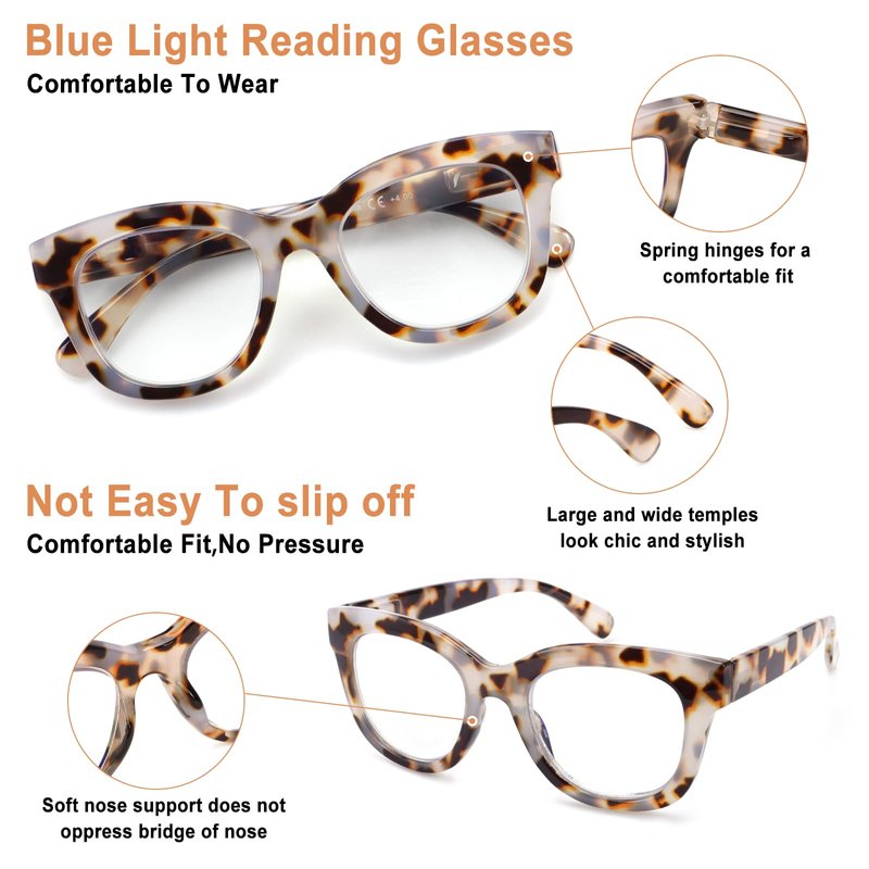 - 【Progressive Multifocal Readers glasses for women】: Our fashion oversized oprah style reading glasses,the frame is trendy thick and sturdy with flexible spring hinges , suitable for any face shape, wear for a long time without sliding off