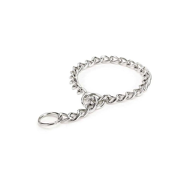 Choke Chain Dog Collars Great for Training! Our professional choke dog collars are safe and effective tools to help train your dog(s) To purchase these chains in wholesale bulk packs, please see item # 351401915350 Our high-quality Choke Chains have smooth, rounded edges for superior comfort, smooth operation, and safety. No sharp points or rough edges to chafe skin or snag fur. Ruggedly constructed of electronically welded steel for strength and chrome-plated for durability and shine. Please note: All choke chains are always measured from end of loop to end of loop. All professionals state: Please measure your dog's neck and add 2 to 4 inches for a proper fit. A choke chain that is a little long will work just fine, but a choke chain that is too short will not work at all :-)