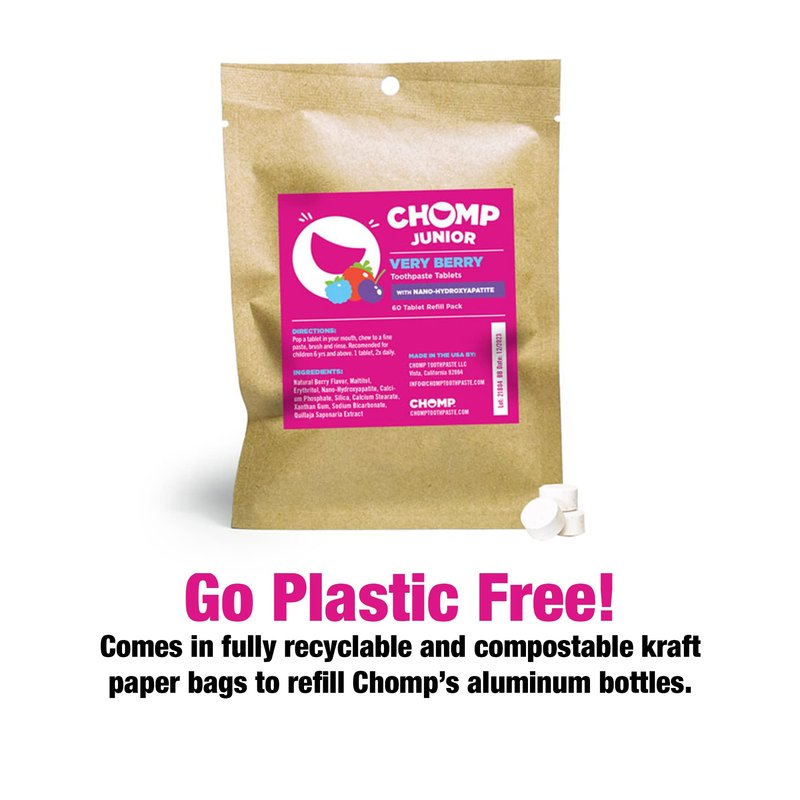 Chomp Junior Very Berry Toothpaste Tablets with Nano Hydroxyapatite Refill
