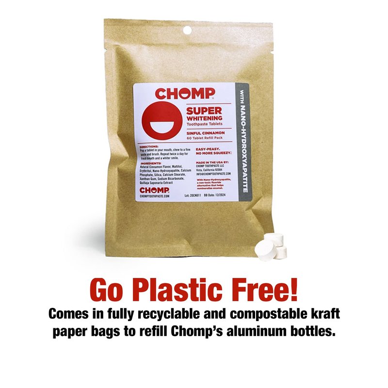 Chomp Super Whitening Cinnamon Toothpaste Tablets with Nano Hydroxyapatite Refill