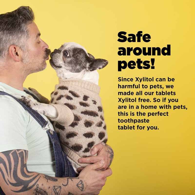 Naturally super whitening cinnamon refill tablets — zero-waste toothpaste tablets in no-plastic packaging.