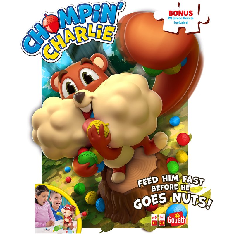 Chompin' Charlie Game - Feed The Squirrel Acorns And Race To Collect Them When They Scatter - Includes 24-Piece Puzzle by Goliath