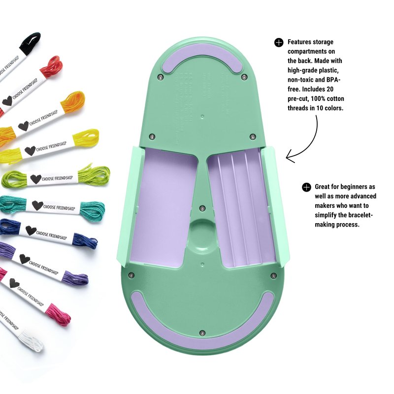 - 🥇 High-Quality Materials & Patented Design: My Friendship Bracelet Maker’s clever design is built to last. Made with high-grade plastic, non-toxic and BPA-free. Includes 20 pre-cut, 100% cotton threads in 10 colors.