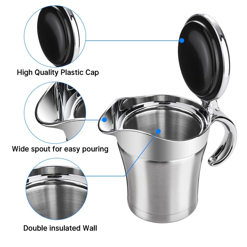 - Double-layer Insulation: Our Gravy Boat is designed with double-layer insulation, which keeps your gravy and sauces hot for longer periods of time. This feature is also perfect for keeping milk and cream cool on the dining table.