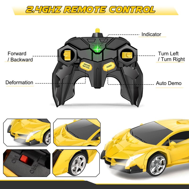 - 2.4GHz Remote Control: Perfect for kids aged 5-7, this transforming RC car features a 2.4GHz remote with a super-responsive control range of up to 50 meters; experience fast-paced, precise driving