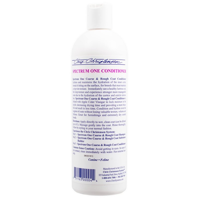 Chris Christensen Spectrum One Dog Conditioner, Coarse and Rough Coat, Groom Like a Professional, Repairs and Protects, Maintains Inner Cortex Hydration, Made in The USA, 16 oz