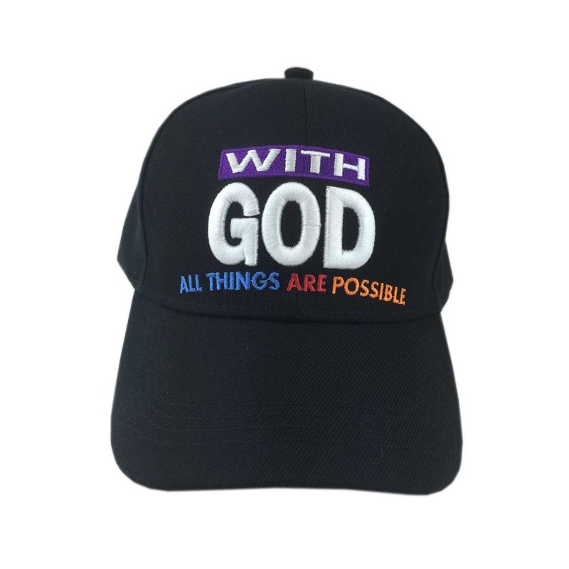 - Embroidered with "with God all things are possible" at the front and "God" at the back.