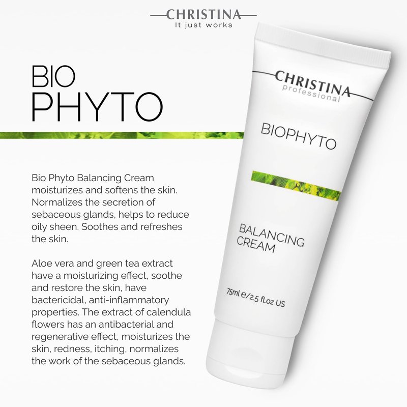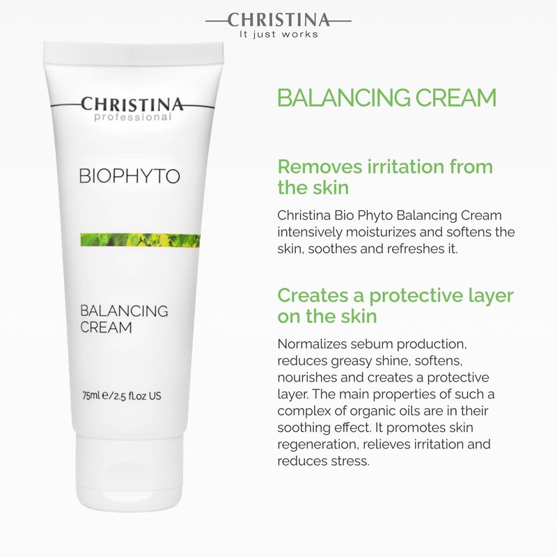 Christina Biophyto Balancing Cream - 75ml Green Tea, Candelula Oil & Aminoacid Complex Balancing Moisturizer - Redness Relief Cream Suitable for Combination, Dry, Normal, Oily & Sensitive Skin Types