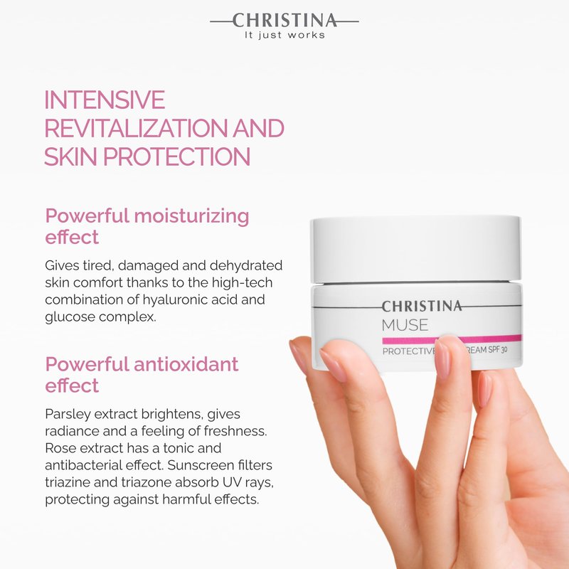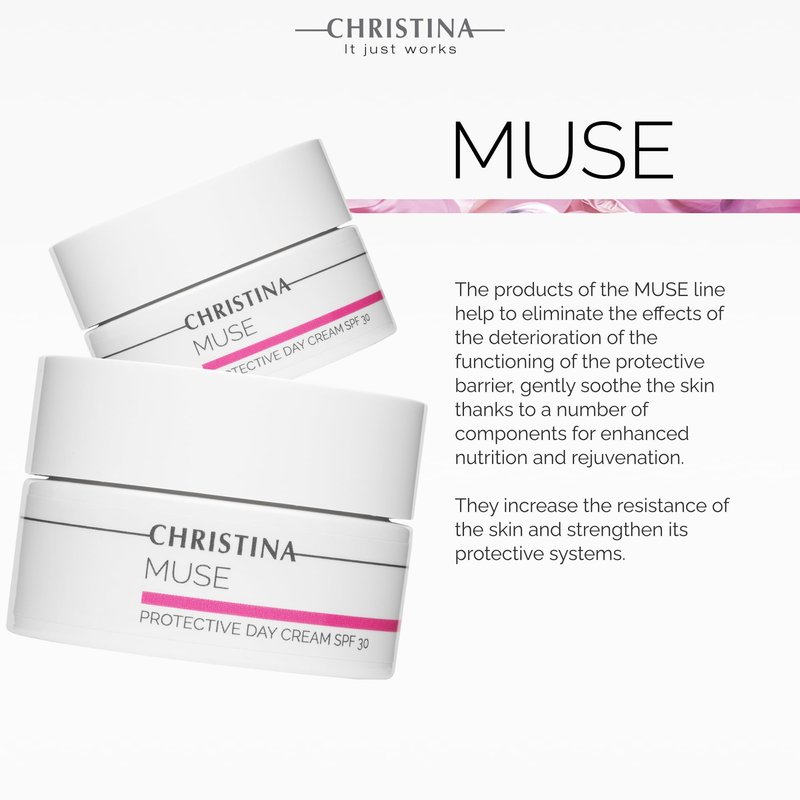 -CHRISTINA- Muse Protective Day Cream with SPF 30 and Hyaluronic Acid | Hydrating Cream for Face | Shields Face Skin | Face Moisturizer for Normal & Dry Skin 50ml