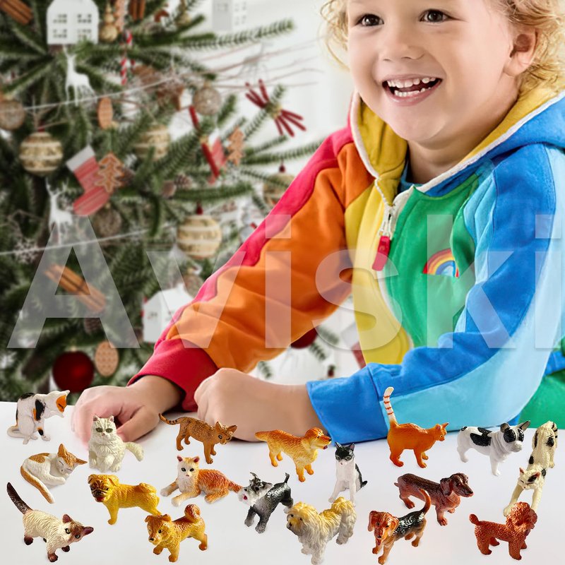Christmas Advent Calendar Cat Dog Figurines - 2024 Christmas Holiday Gift Animals for Kids and Adults, 24 Boxes Countdown Calendar to Christmas Centerpiece Home Decorations