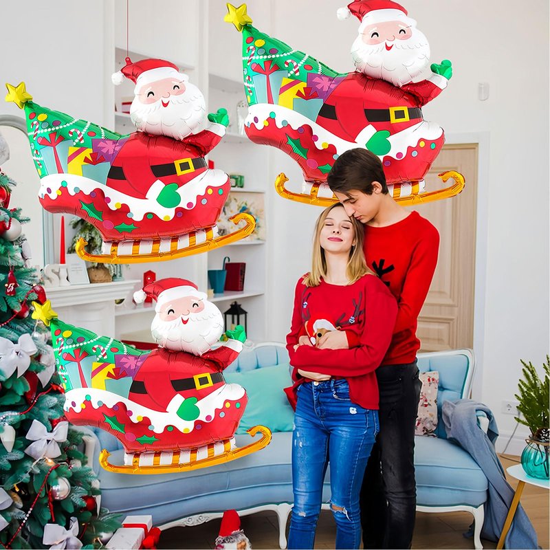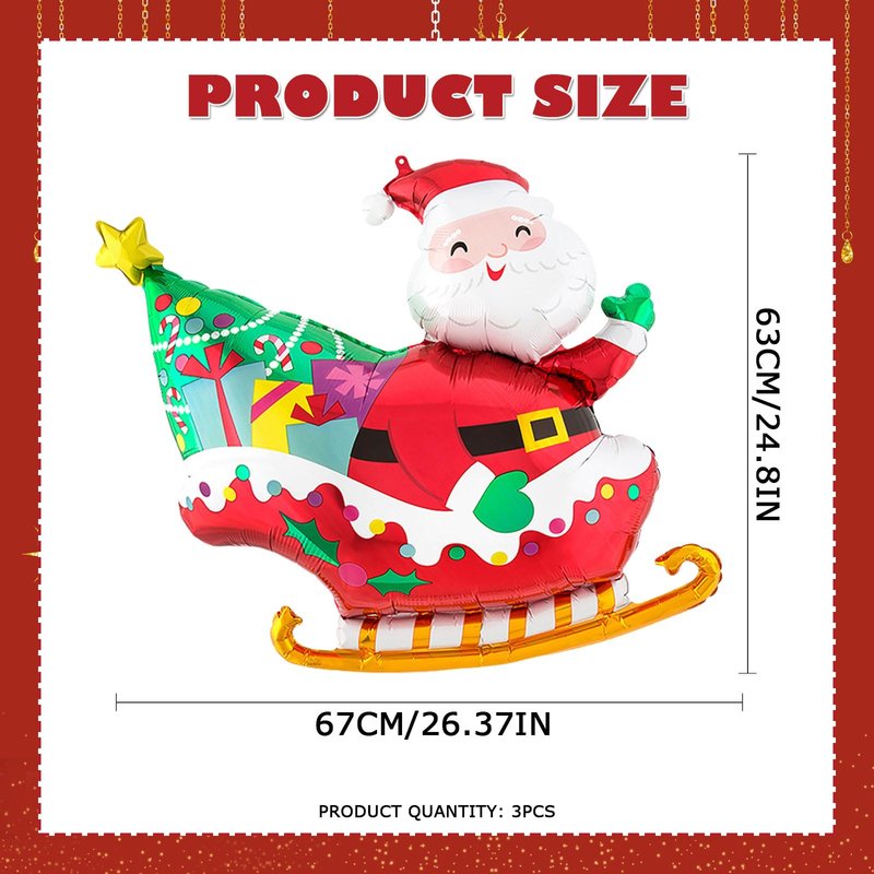 Christmas Balloons, 3pcs 26Inch Santa Claus Foil Balloons for Xmas Harvest Christmas Party Birthday Party Supplies Decorations (Santa Clausi In a Sleigh)
