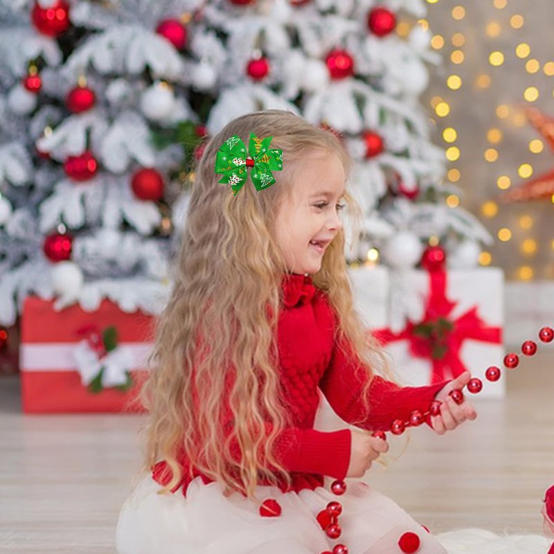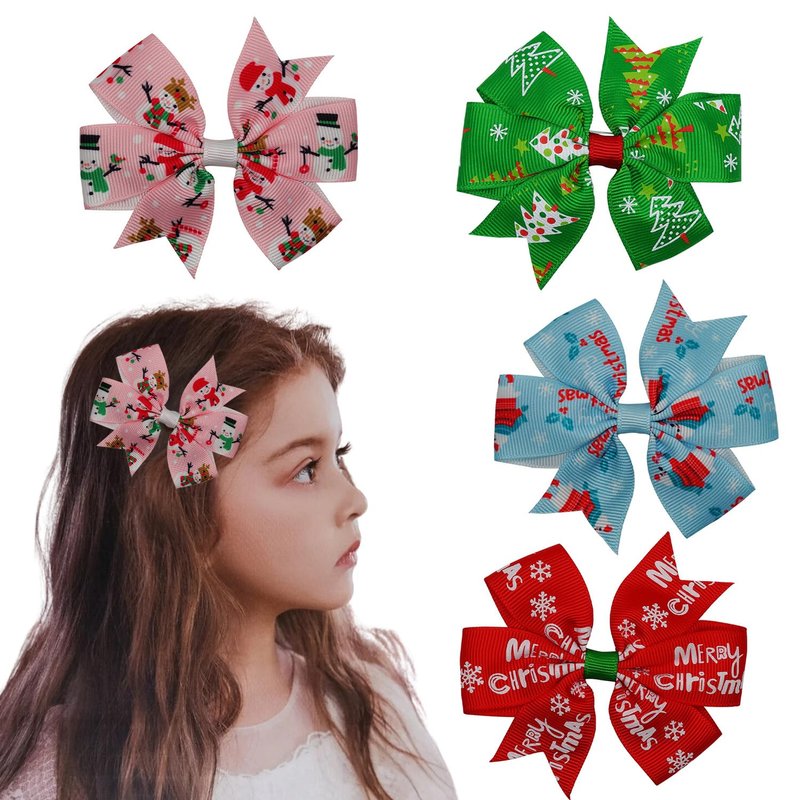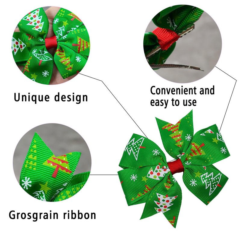 - Package: You will get 4 pieces Christmas hair bow clips in different pattern, which is blue Santa Claus hair bow clip, red Merry Christmas hair bow clip, pink snowman hair bow clip,green Christmas tree hair hairpin, they are easy to match with your festive costumes.