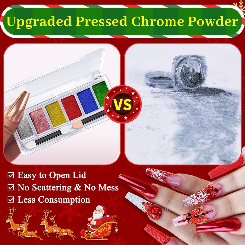 Christmas Chrome Nail Powder, Red Chrome Powder For Nails & X'mas Gold Green Metallic Mirror Nail Chrome Powder & Silver Rose Gold Pink Blue Purple Solid Chrome Powder for Nail Art