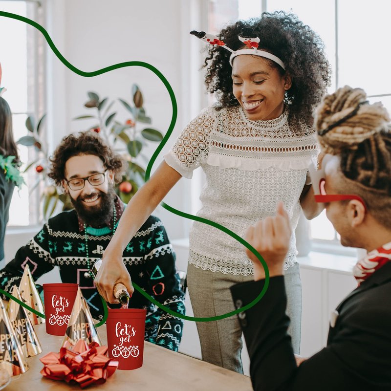 - FUNNY AND FESTIVE DESIGN - Elevate your Christmas party decorations with these "Let's Get Lit" cups! Guests will love their clever design, perfect for Merry Friendsmas decorations or adult Christmas party favors.