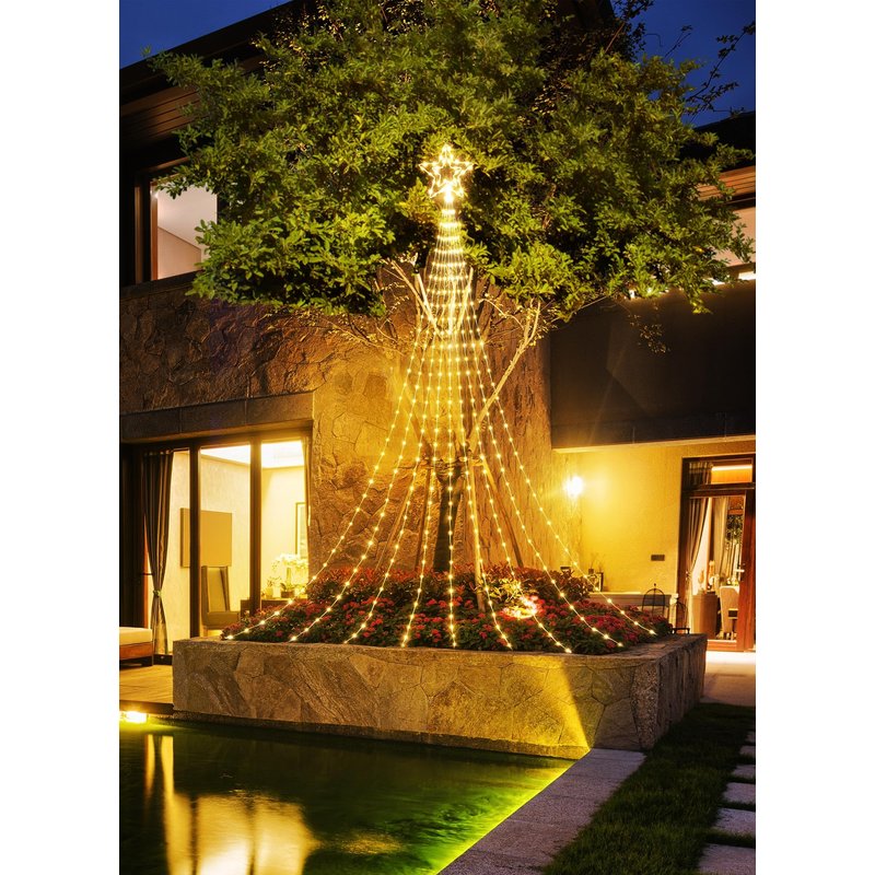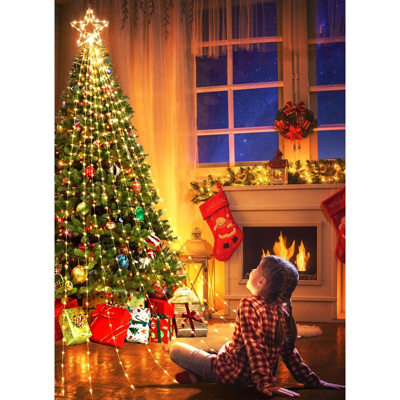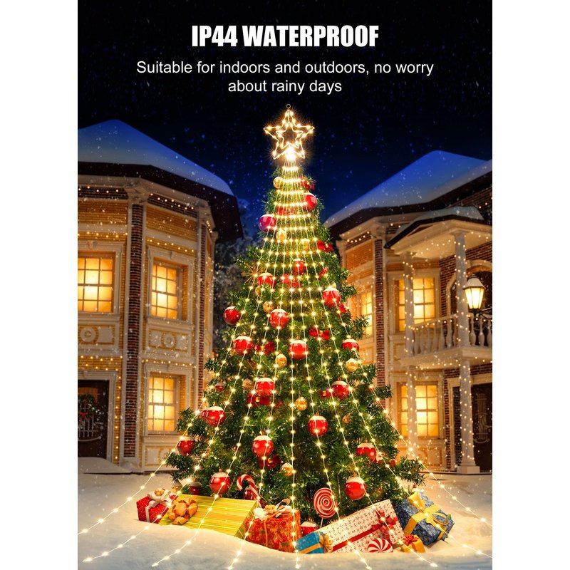 - Magical and Cozy Decor: Transform your home into a cozy winter wonderland with our Christmas tree decoration lights. The 11-inch topper star and 9 strings of warm white lights, each 11.8 feet long, add a touch of elegance to your holiday decor. Plus, with 1 hanging string and 9 ground spikes, these lights are perfect for versatile outdoor decorating.
