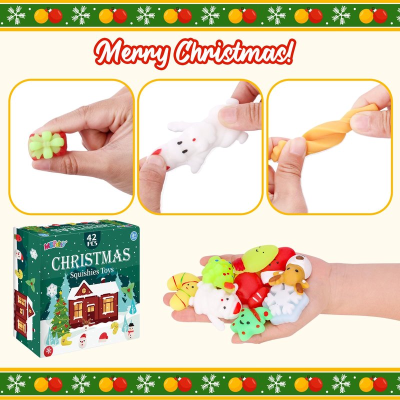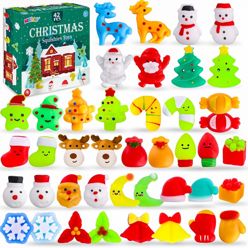 Christmas Goodie Bag Stuffers, 42 Pcs Christmas Squishies Toys for Kids Squishies Bulk Toy Mochi Fidget Stress Relief Toy for Stocking Stuffers Christmas Party Favors Xmas Gifts