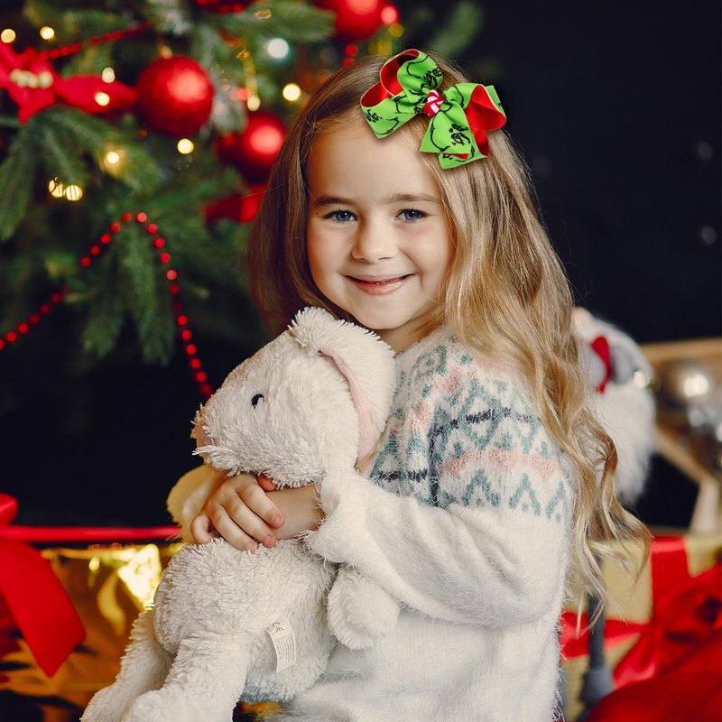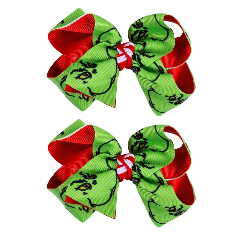 - Handmade Green Hair Bow Clips- 2pcs cute Christmas green monster bow hair clips, perfect hair accessories for Halloween cosplay and Christmas dress up! Well hand-made of top quality solid durable green,red grosgrain ribbon with study metal alligator clips, great to keep the bows in the hair securely,safe and comfort,non slip!