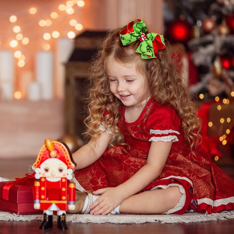 - One Size Fit All- Cute cartoon green hair bows at nice size: 4.33 inch, one size fits most teens and toddlers,baby girls, women,age among 6m-9t little princess,2t, 3t, 4t, 5t, 6t to 10 years old and over ages kids,adult; enjoy your happy Christmas with our novelty costume accessories.