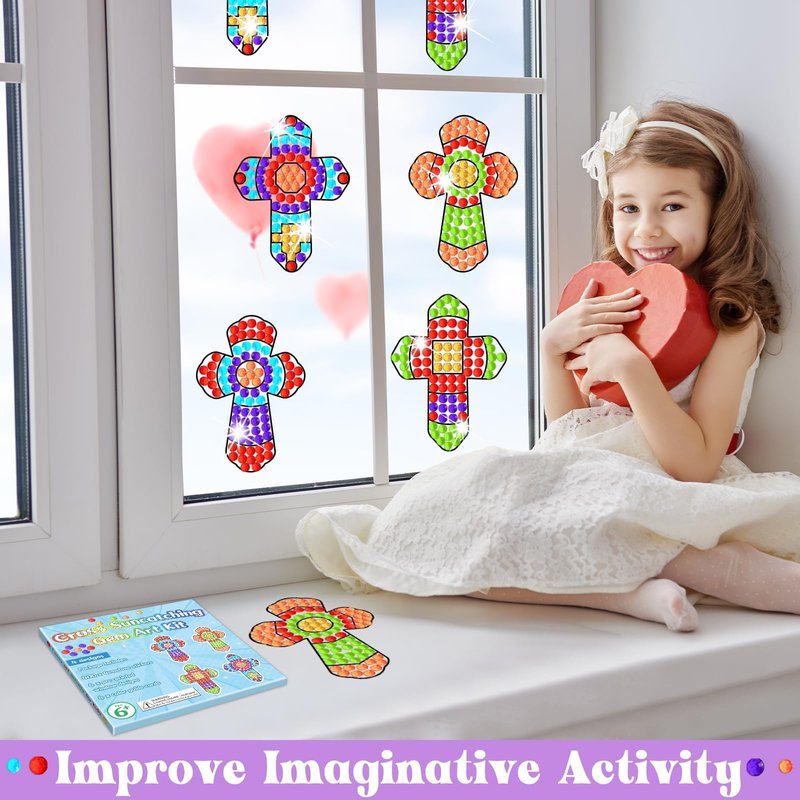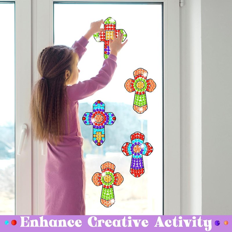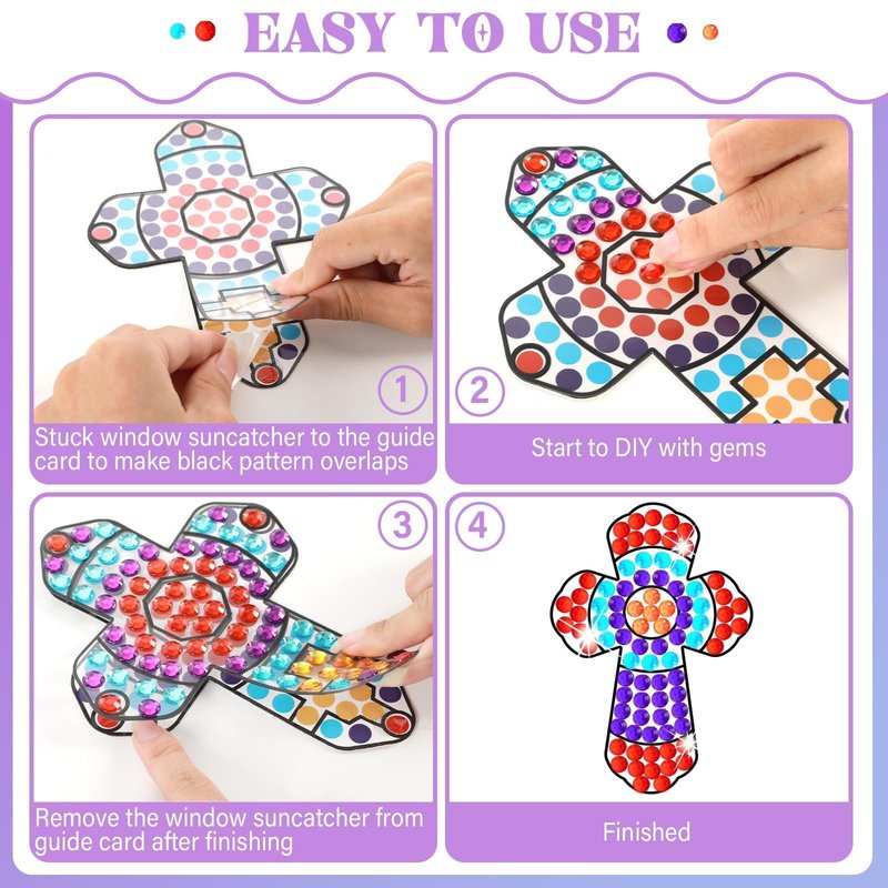 - 【Wide Application】The Sunday school Cross suncatcher kits can be seasonal home decor. You can hang it up near the window, the diamond stickers will glint back the sun's rays and make your house more eye-catching. You can also use them to decorate anywhere you want, such as desks, refrigerators, doors, etc...