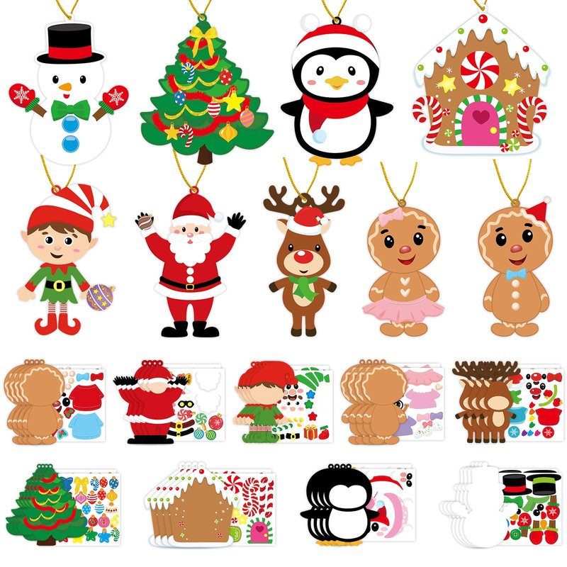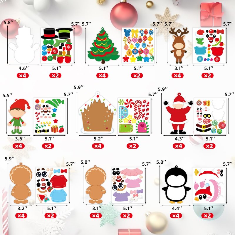 - What You Get : 36pcs Christmas ornament cutouts, 18 sticker sheets and 36 ropes. 9 cute designs