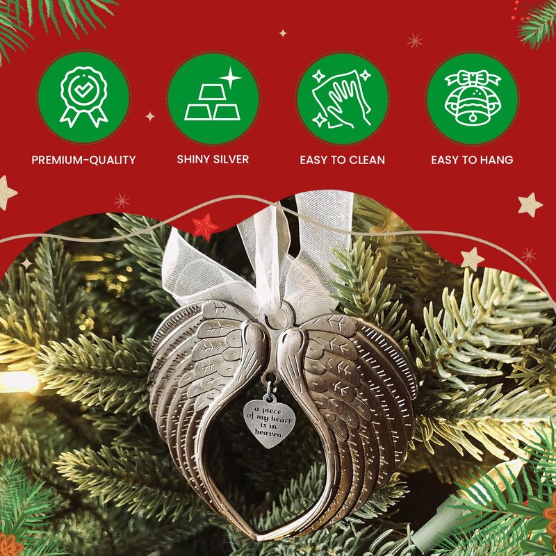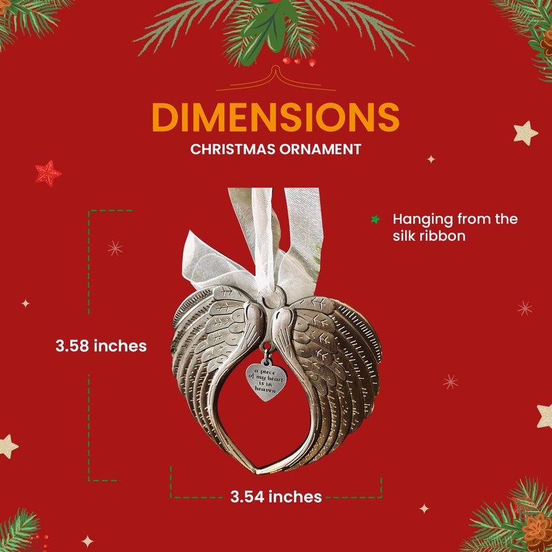 Christmas Ornaments Angel Wings - A Piece of My Heart is in Heaven Ornament for Christmas Tree - Double Sided Memorial Ornament for Loss of Loved One - Luxurious Silk Ribbon & Red Gift Bag