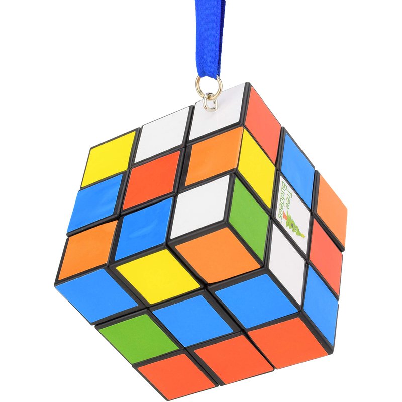 Christmas Ornaments Tree Buddees Colored Cube Puzzle with Blue String
